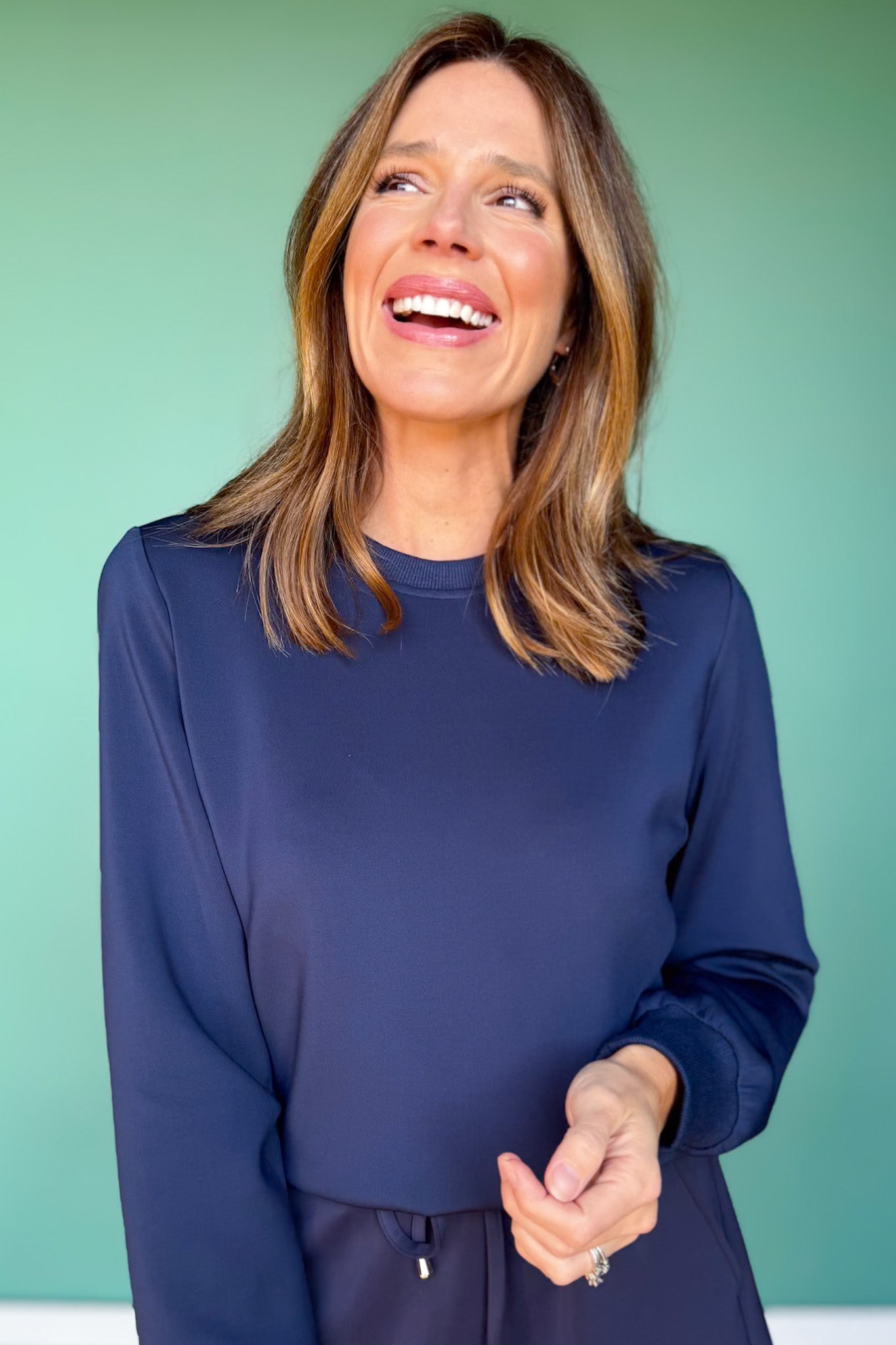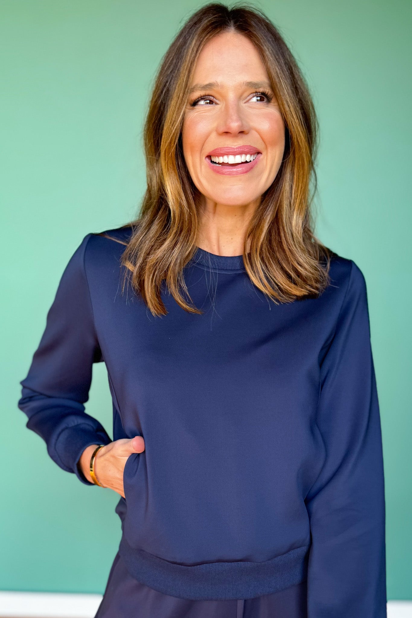 Perfect for pairing with the SSYS Scuba Wide Leg Pants In Navy or going solo, this sweatshirt is your new go-to for looking put-together while feeling absolutely pampered.