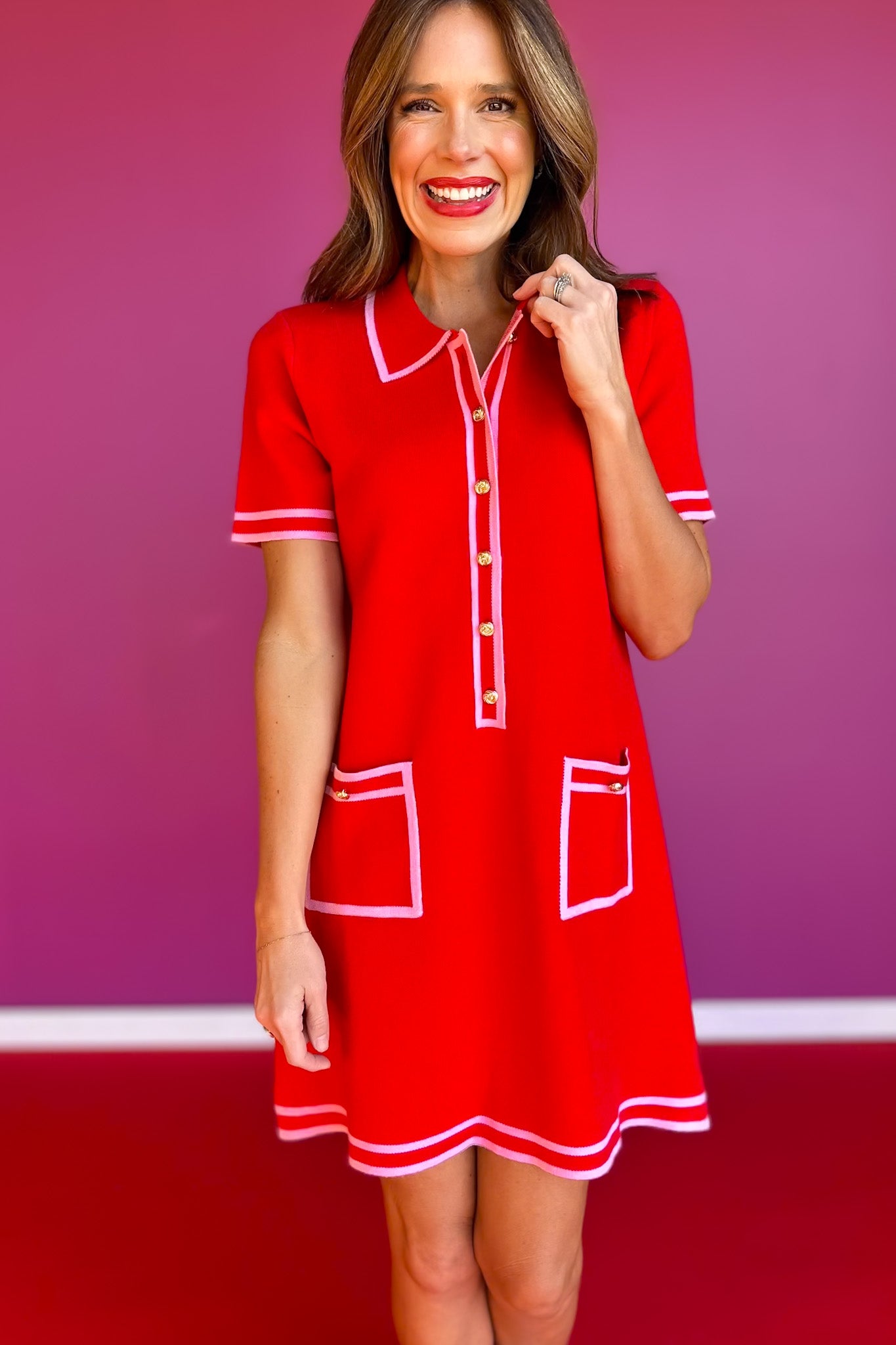 SSYS Ruthie Contrast Knit Dress In Red Pink