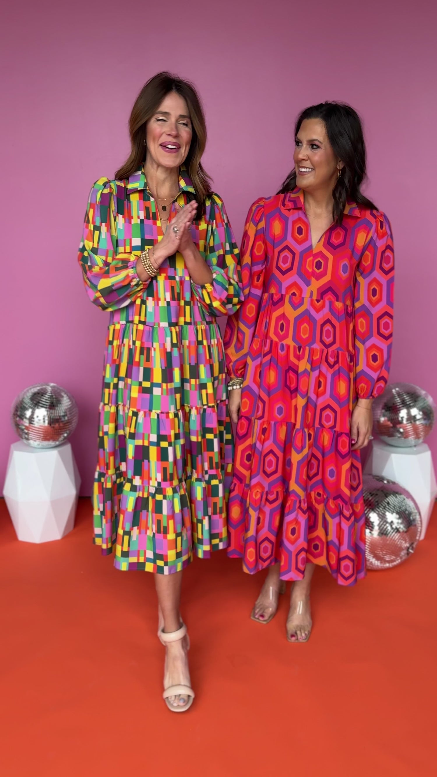 SSYS The Emery Midi Dress In Pink Orange Hexagon Print