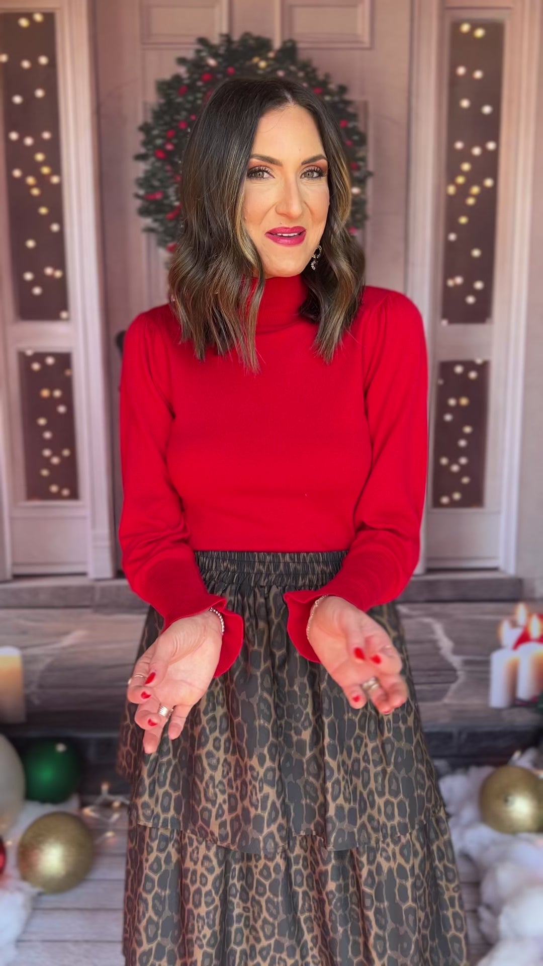 She is so LUXE and so DETAILED!!! Introducing the SSYS The Margie Turtleneck Flounce Sleeve Sweater In Red! She features a victorian hem with a cute flounce ruffle that can be lengthened or shortened depending on how you style, while still capitalizing on the details. Margie has an easy to wear mock neck with slight inverted pleats on the shoulder to give you a feminine fit! Style her with an high waisted skirt or jeans as she was designed to hit in length a little shorter for an overall more feminine fit. We love Margie paired with our SSYS The Eve Tiered Maxi Skirt In Animal or layered under our SSYS The Paige Tweed Jacket In Black for a festive combination that will take you through the holiday season!