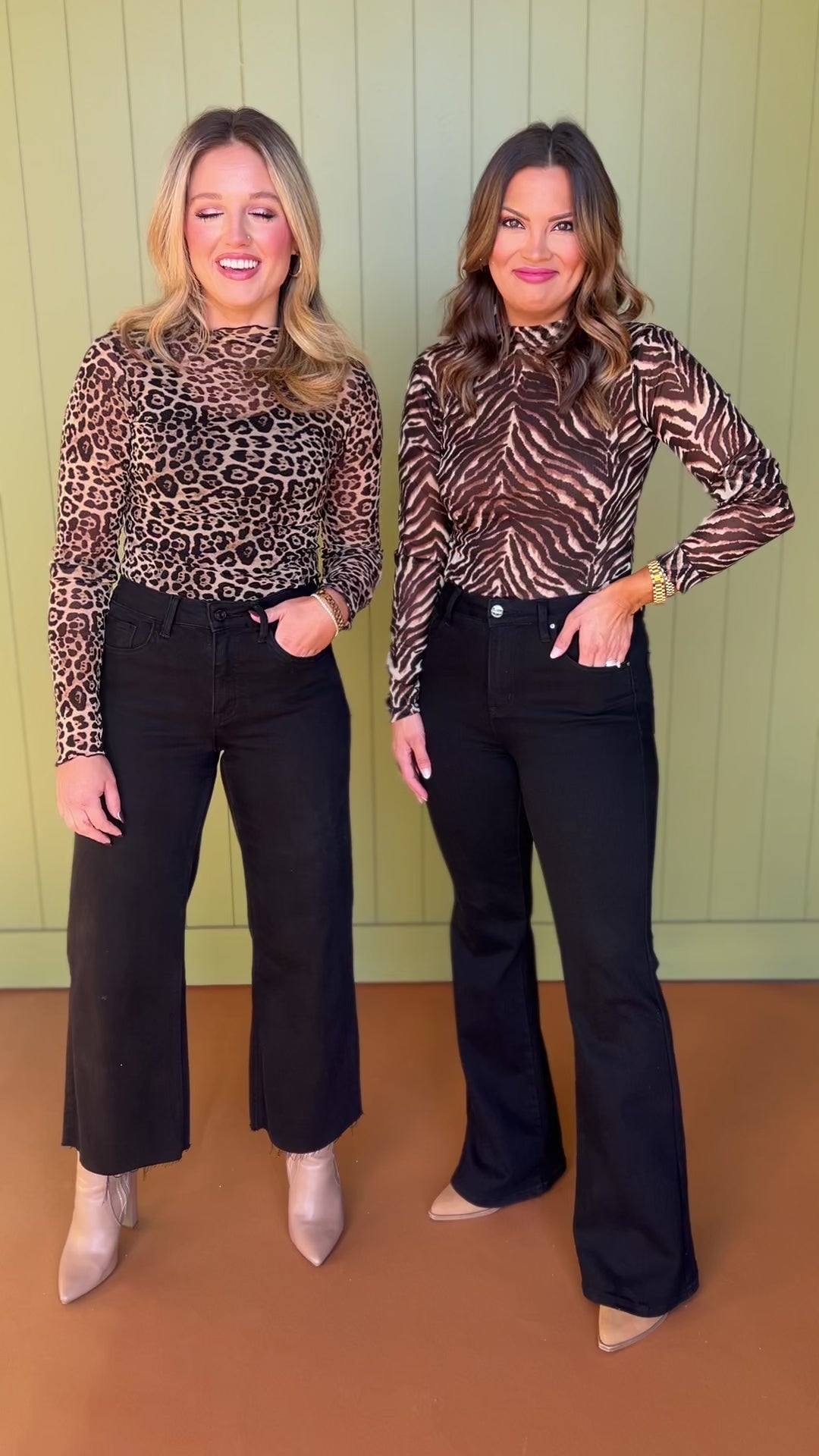 Unleash your inner sass with our Taupe Animal Print High Neck Fitted Sheer Mesh Lace Knit Top. This top features a high neckline, fitted silhouette, and sheer mesh and lace knit fabric for a trendy yet elegant look. Perfect for a night out or to elevate your everyday style. We are loving this trend under a sleeveless vest and overalls! Shop our TOPS and BOTTOMS to build your unique look!
