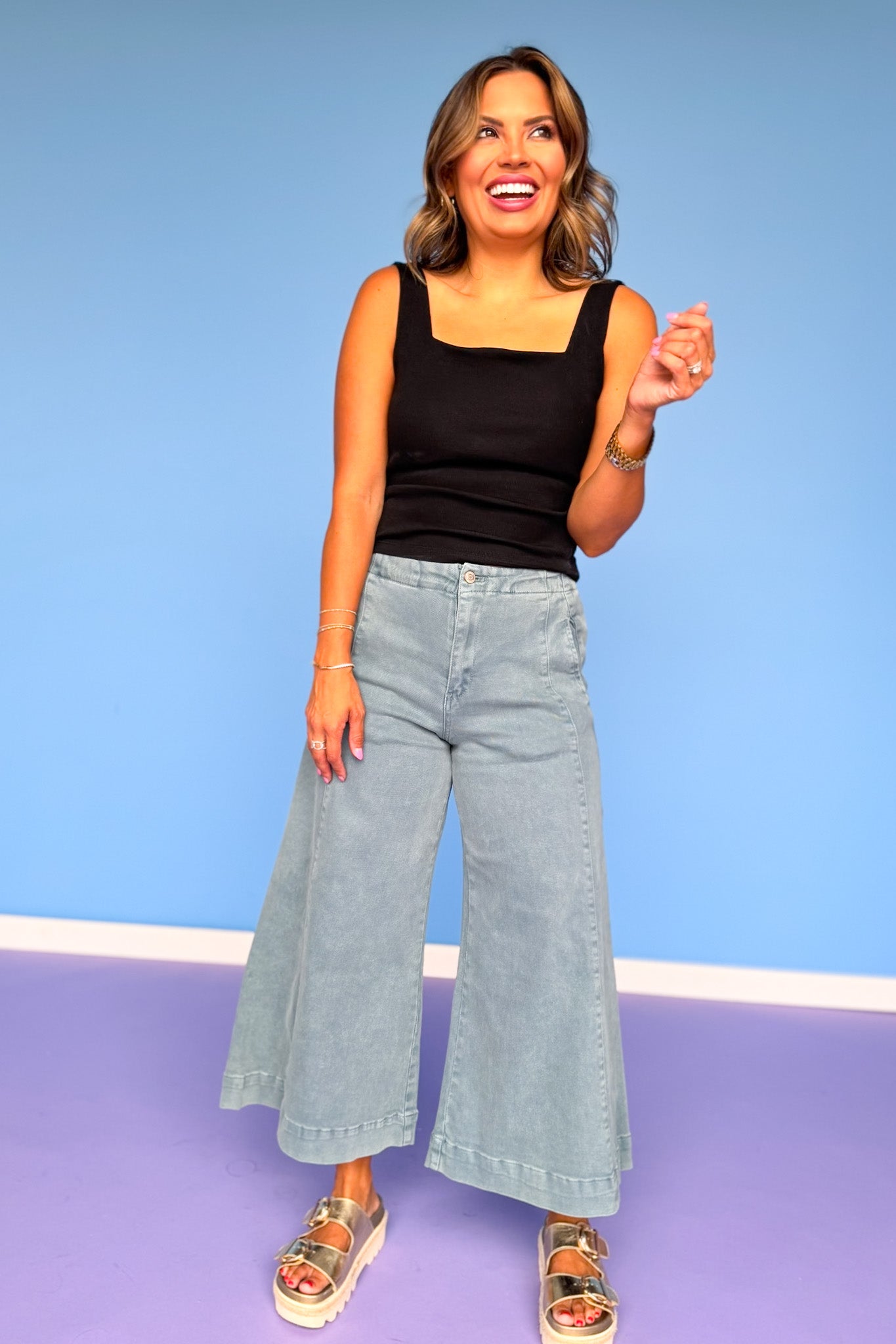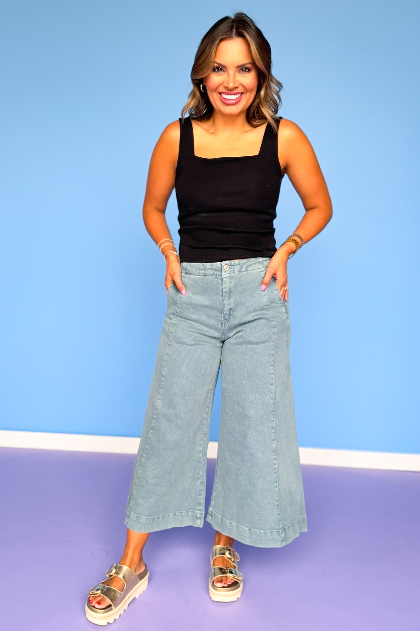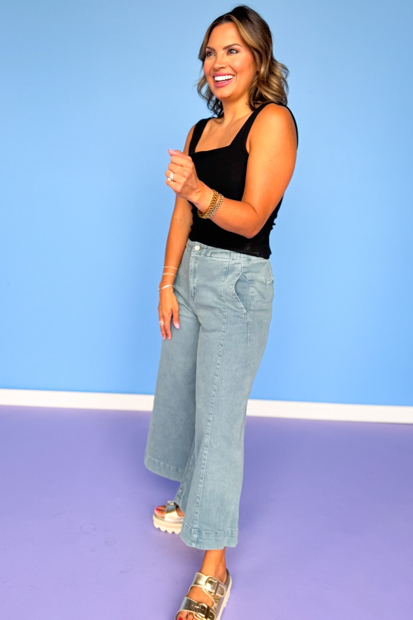Teal High Rise Cropped Wide Leg Jeans *FINAL SALE*