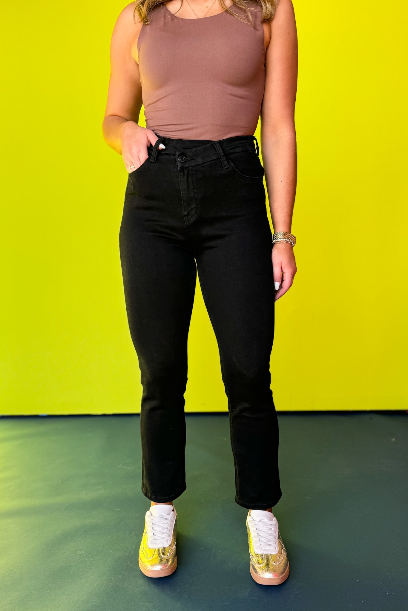 The Vervet Black High-Rise Crossover Jeans are creating quite a buzz with their curve-hugging slim fit and straight leg look. Whether you're heading out for the evening or just doing some shopping, these jeans will always have you looking your best! You can pair this denim back to so many tops in your closet!