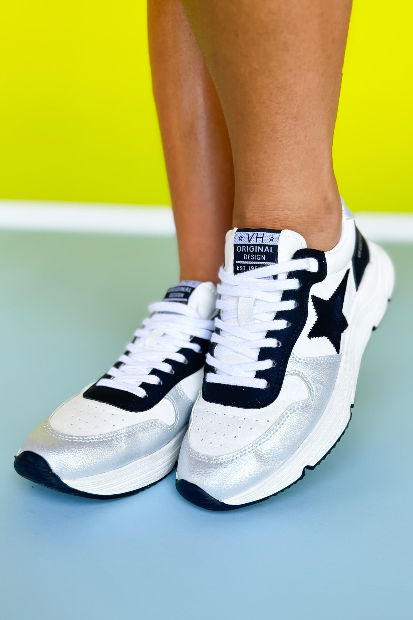 Add some metallic shine to your sneaker collection with these Vintage Havana Black Star Metallic Detail Sneakers. These fun and unique sneakers feature a black star detail and pops of silver metallic, adding a touch of glam to any outfit. Perfect for adding a playful and versatile touch to your everyday look!