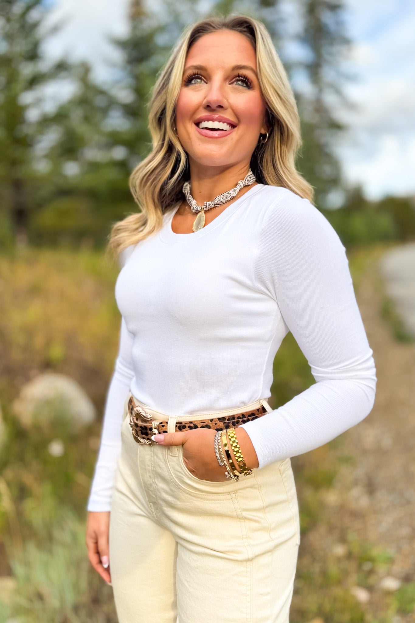A true wardrobe essential, the Ribbed Crew Neck Long Sleeve Top in White by SSYS The Label combines timeless simplicity with elevated comfort. Made from a soft ribbed knit with a touch of stretch, this fitted top flatters the figure while allowing for easy movement. Plus, the built in bra makes this an essential in your closet. The classic crew neckline and sleek long sleeves make it a versatile piece you’ll reach for again and again.